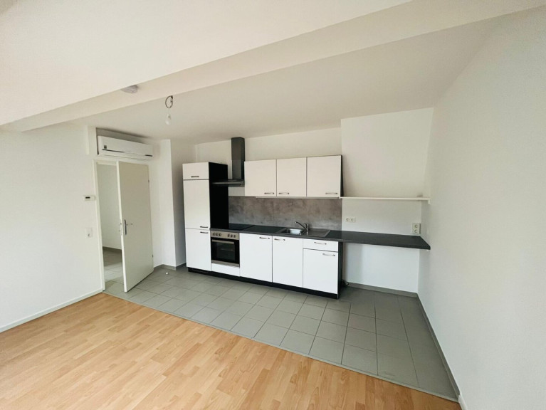Wöllersdorf - Koffer packen und einziehen...! Top-Dachgeschoß-Mietwohnung im Ortszentrum. Die Wohnung befindet sich im 2. Stock und weist eine nord-südseitige Ausrichtung mit einer Wohnfläche von etwa 57 m2 auf; Top-Zustand: Laminatboden vollständig erneuert, Wände und Zargen neu gestrichen. Raumaufteilung: Vorraum, Bad/WC, Gang, Ess-Wohn-Küchenbereich (möblierte Küchenzeile ohne Geschirrspüler und Gefrierschrank), ein Schlafzimmer, Kabinett/Schrankraum, Abstellraum. Air-Condition im Küchen-Wohnbereich und auch im Schlafraum. Heizung: Gaszentralheizung. Anschlüsse: Gas, Wasser, Strom, Kanal, Tel., Kabel-TV. Gartenmitbenützung. 1 KFZ-Abstellplatz.