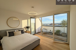 Diese außergewöhnlich schöne 2-Zimmer-Dachgeschosswohnung vereint modernes Wohngefühl, hochwertige Ausstattung und seltene Freiflächen zu einem besonders stimmigen Zuhause. Zwei Terrassen – jeweils dem Wohn- und dem Schlafbereich zugeordnet – verleihen der Wohnung ein hohes Maß an Privatsphäre und Wohnqualität.