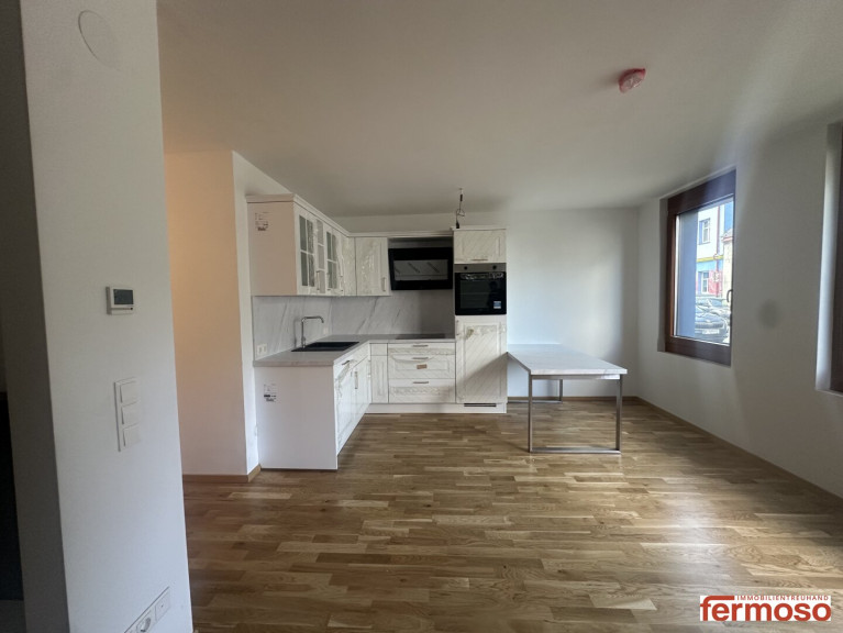 Die Wohnung besticht durch einen modernen Stadtblick und eine hochwertige Ausstattung. Der elegante Laminatboden und die Fußbodenheizung sorgen für ein angenehmes Wohnklima, während die Einbauküche zum Kochen und Verweilen einlädt. Das Badezimmer ist mit einer komfortablen Dusche ausgestattet und überzeugt durch Funktionalität und Stil.