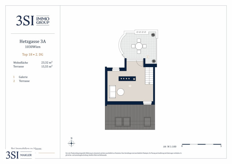 Über eine interne Treppe gelangt man auf die obere Ebene mit einer offenen Galerie, die zusätzlichen Raum für individuelle Nutzung bietet. Die angrenzende Terrasse lädt zum Entspannen und Genießen ein und macht diese Maisonette zu einem besonderen Zuhause für urbanes Wohnen mit hohem Wohnkomfort.