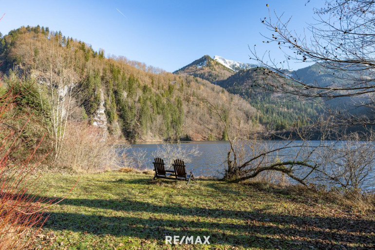 Hier lebt der Stil in jeder Linie: handwerklich gefertigte Vollholztüren, massive Sichtbalken, eine elegante Schmiedeeisentreppe, die ins Obergeschoss führt, Maßmöbel aus heimischem Holz, Kaminofen, Naturstein und Terrakottafarbenen Fliesen. Die klassische Architektur erinnert an ein elegantes Jagdhaus – stimmig, charmant, mit viel Charakter. Große Fenster rahmen den Blick in die Natur, der Garten ist grün, geschützt und wunderbar privat. Und dann wäre da noch der eigene Badeplatz am Krottensee – mehr als 800 m2 ganz für Sie allein. Ein Logenplatz am Wasser, der jeden Tag zum Urlaub macht.