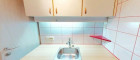 Die Küche ist mit einer einfachen Einbauküche ausgestattet.