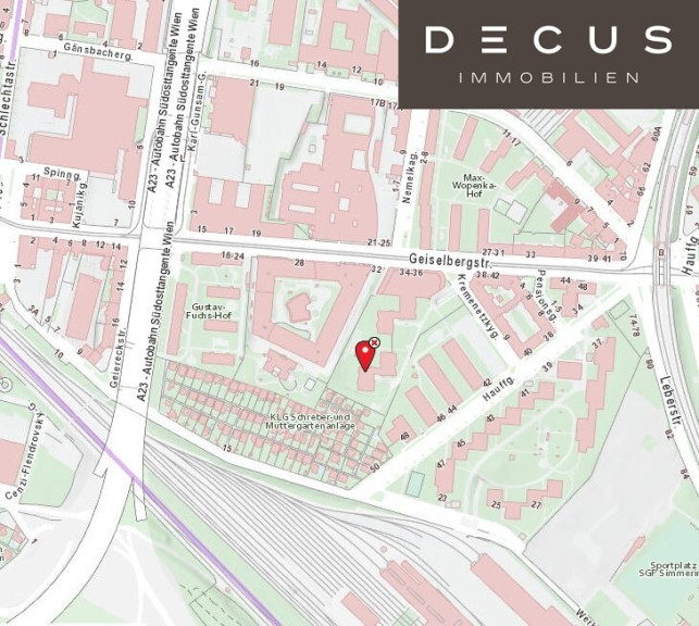 Die Nähe Schnellbahnstation Geiselbergstraße und etliche Buslinien gewährleisten eine gute Verkehrsanbindung.