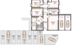 Praktische Annehmlichkeiten wie zwei Garagen und 13 Stellplätze sorgen dafür, dass sowohl Sie als auch Ihre Gäste stets bequem parken können. Mit 12 Bädern ist der Komfort für alle Bewohner und Besucher sichergestellt.