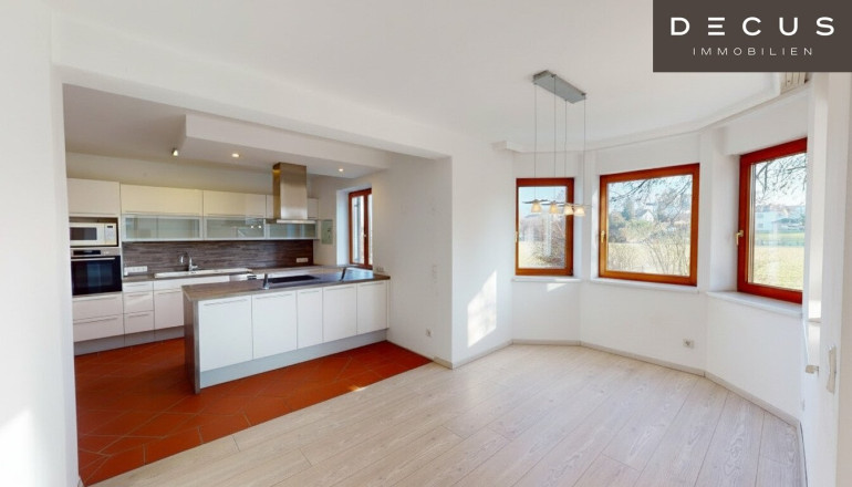 Die Küche aus dem Jahr 2013 ist funktional gestaltet und harmonisch in den Wohnbereich integriert – ideal für gemeinsames Kochen und Leben. Mehrere großzügige Schlafzimmer bieten Platz für Familie, Homeoffice oder Gäste und lassen sich flexibel an individuelle Bedürfnisse anpassen.