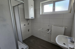 - Badezimmer mit Dusche und Waschmaschinenanschluss