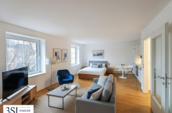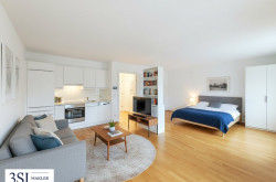Der Wohn-/Ess- und Schlafbereich ist clever gestaltet und bietet alles, was man für komfortables Wohnen benötigt – ideal für Singles oder als stilvolles City-Apartment.