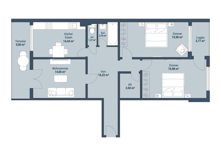 Wohnfläche ca. 89 m² im 6. Liftstock – Dachgeschoß ohne Dachschrägen