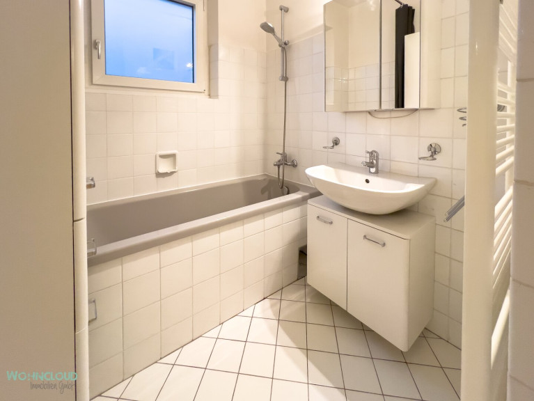 Die Einbauküche macht den Alltag unkompliziert (und lädt zu gemeinsamen Kochabenden ein), während das Badezimmer mit Fenster mit Tageslicht punktet – ein Detail, das man im Alltag schnell lieben lernt.