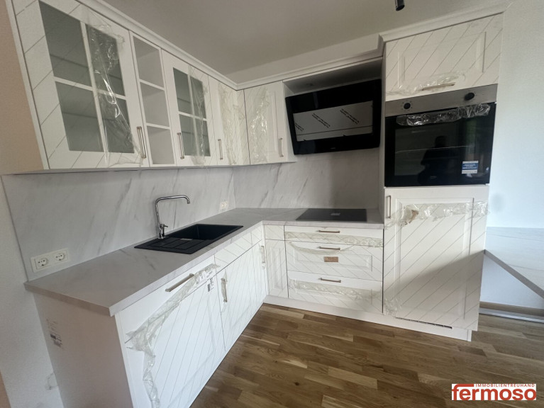 Die Wohnung besticht durch einen modernen Stadtblick und eine hochwertige Ausstattung. Der elegante Laminatboden und die Fußbodenheizung sorgen für ein angenehmes Wohnklima, während die Einbauküche zum Kochen und Verweilen einlädt. Das Badezimmer ist mit einer komfortablen Dusche ausgestattet und überzeugt durch Funktionalität und Stil.