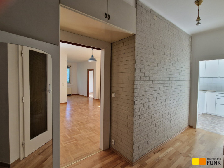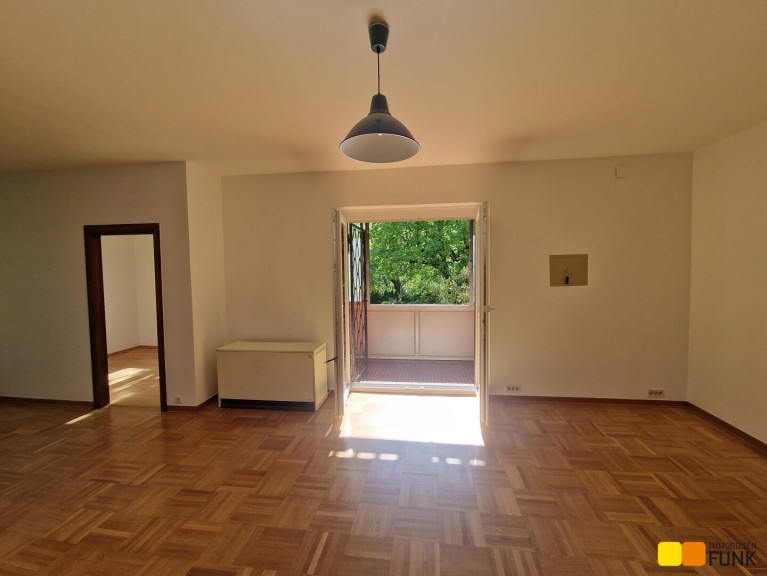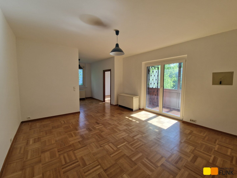 Im 2. Stock (ohne Lift) eines gepflegten Wohnhauses, Baujahr 1956, bietet Ihnen diese ruhige und großzügige Wohnung ca. 75 m² Wohnfläche. Sie betreten die Wohnung über einen Vorraum, der Ihnen ausreichend Platz für eine Garderobe bietet. Linker Hand des Vorraums gelangen Sie in den lichtdurchfluteten Wohnbereich. Von hier erreichen Sie sowohl das Schlafzimmer, als auch die Loggia. Vom Vorraum rechts befindet sich auch das separate WC und das Bad. Gerade aus erreichen Sie die Küche mit Einbauküche und Elektrogeräten. Der Wohnraum öffnet sich zur westseitigen Loggia, von der Sie eine wunderbare Aussicht ins Grüne und den allgemeinen Garten des Hauses genießen. Das Schlafzimmer ist ebenfalls in den ruhigen Gemeinschaftsgarten ausgerichtet. Im Wohnzimmer, dem Schlafzimmer und im Vorraum ist Parkettboden verlegt. Das Badezimmer ist mit Badewanne, Waschbecken und Handtuchtrockner ausgestattet. Die Wohnung befindet sich in gutem Zustand. Geheizt wird mittels Nachtspeicherheizung. Das Highlight der Wohnung ist die Nutzungsmöglichkeit des großen Gemeinschaftsgartens.