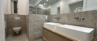 - Sanitärräume mit großflächigen Feinsteinzeugplatten, Spiegeln, Design-Waschtischen und Design-Armaturen ausgestattet