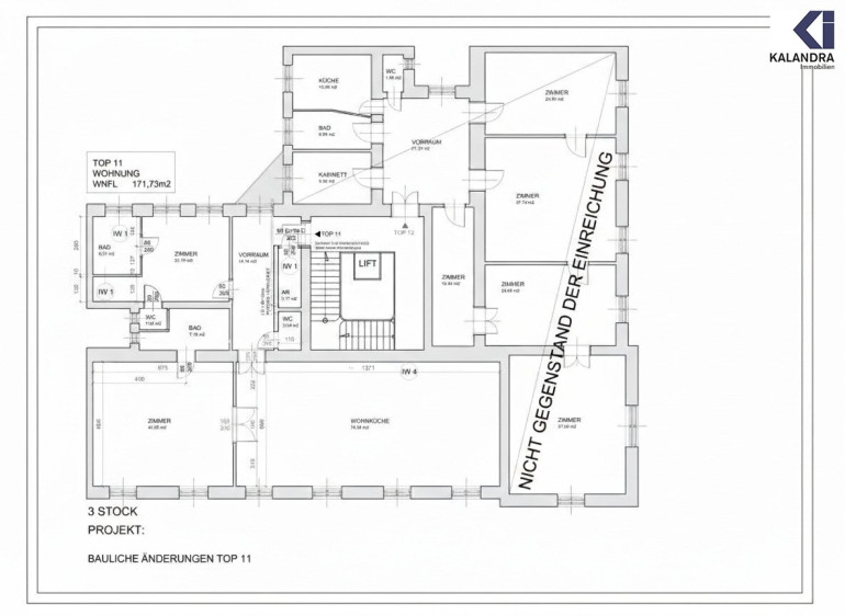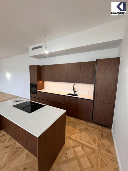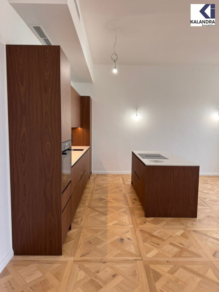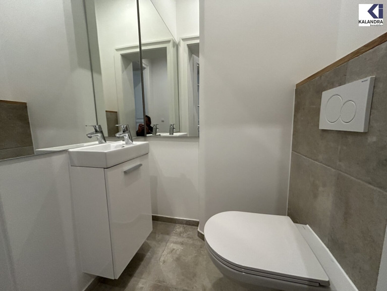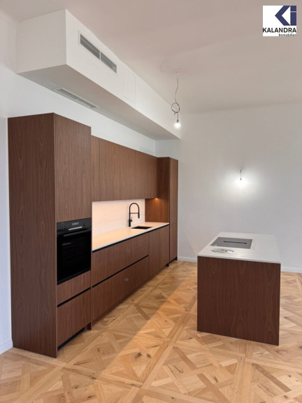 entrance hall (approx. 15m²), guest toilet, utility/ storage room, spacious living and dining room with open-plan kitchen (approx. 76m²) and southwest-facing views over "Schmerlingplatz", adjoining bedroom (approx. 41m²) with en-suite bathroom (approx. 7 m²) featuring a walk-in shower, double vanity, and toilet, further a courtyard-facing bedroom (approx. 20m²) with a walk-in closet corner, adjoining bathroom (approx. 7m²) with a walk-in shower and separate toilet.