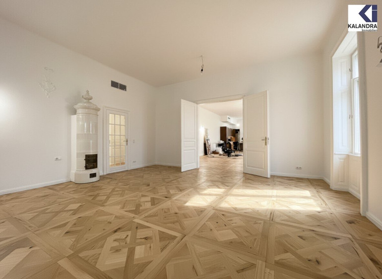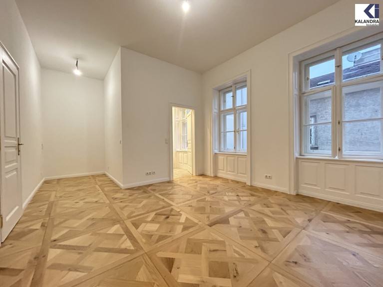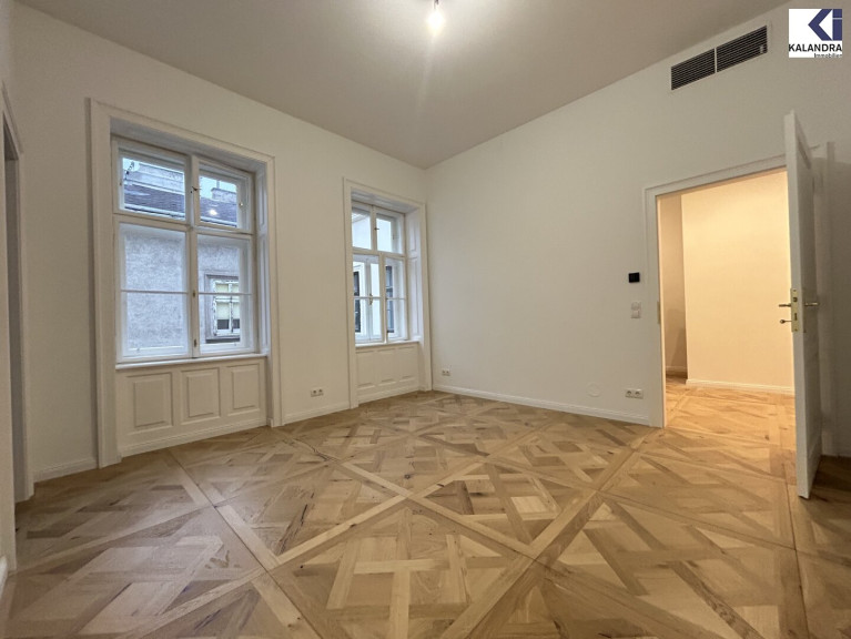 This extensively renovated and spacious 3-room apartment, located on the 4th floor (accessible by elevator) of a stylish palatial building, in close proximity to the "Ringstrasse" and the Parliament building and bordering a park offers the following: