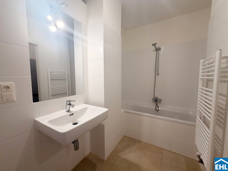 - Badezimmer mit Badewanne und Waschmaschinenanschluss
