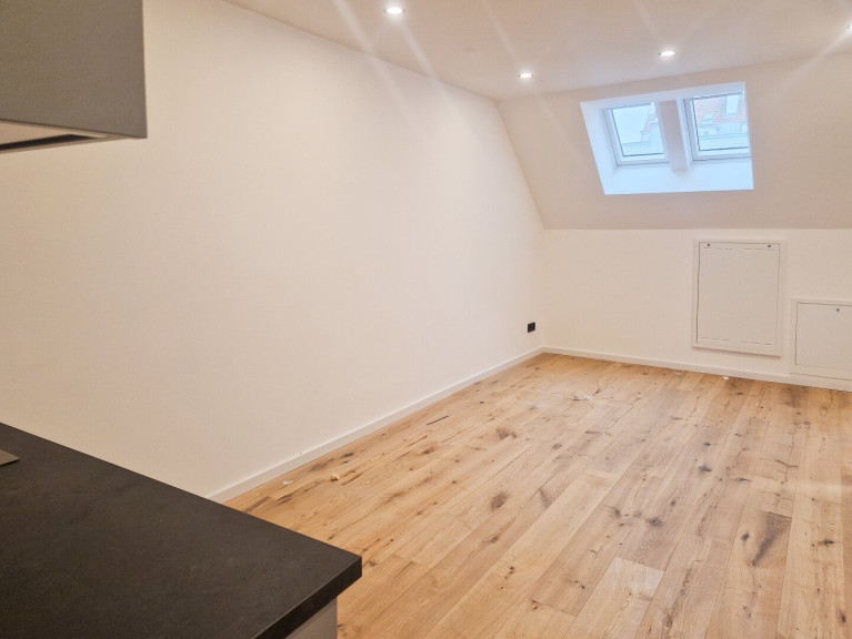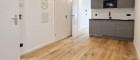 Die Ausstattung ist besonders hochwertig. In den Wohnbereichen sind edle Parkettböden verlegt, die für eine warme und einladende Atmosphäre sorgen. Das Badezimmer ist mit großformatigen 60x60 cm Marazzi-Fliesen verlegt und bietet eine bodengleiche Walk-in-Dusche.