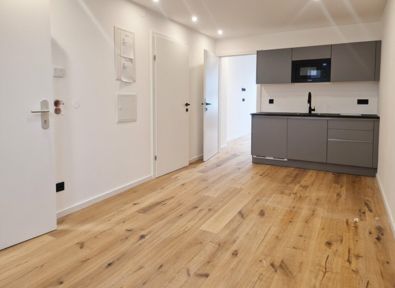 Sie verfügt über einen Vorraum mit offener, moderner Einbauküche. Hier bietet sich auch Platz für einen Essbereich. Weiters gibt es ein gemütliches Zimmer für Wohn- und Schlafbereich mit Ausgang auf die ca. 3,8 m² Terrasse.