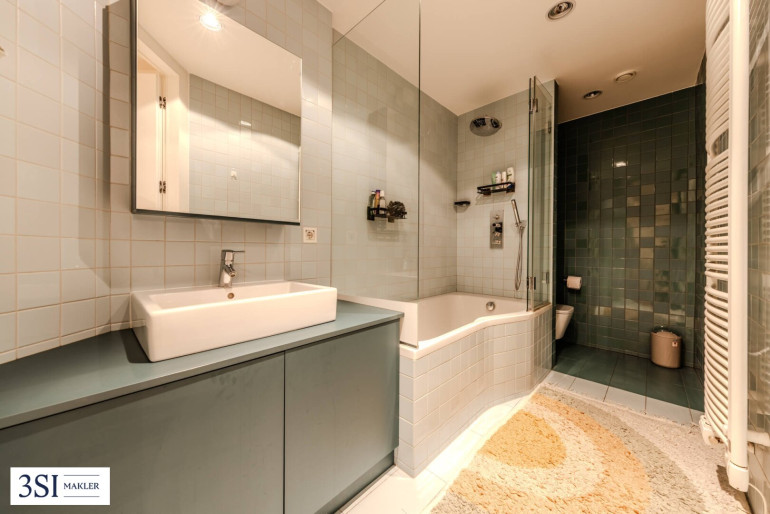Großzügige Fensterfronten sorgen für ein lichtdurchflutetes Ambiente, während edle Parkettböden und ein durchgängiges, elegantes Gestaltungskonzept den hohen Qualitätsanspruch dieser Immobilie unterstreichen. Die Wohnung überzeugt gleichermaßen durch Funktionalität wie durch ästhetische Raffinesse.