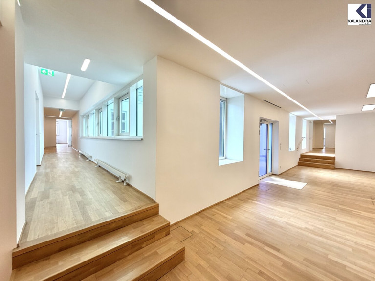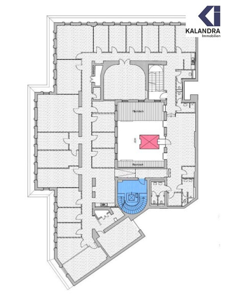 3 Eingänge (ein direkter Liftausstieg), Vorzimmer/ Empfang, 22 Büroräume (es wäre möglich die Zimmereinteilung noch zu verändern), 2 Teeküchen, 4 WC-Anlagen und weitere Nebenräume.