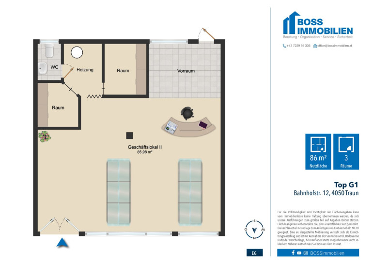 Unverbindliches, freibleibendes Angebot. Informationen nach bestem Wissen und Gewissen vom Abgeber erhalten – für die Richtigkeit wird keine Haftung übernommen. Irrtümer, Druckfehler und Änderungen vorbehalten. Besichtigungen und Beratungen erfolgen kostenlos, lediglich im Falle einer erfolgreichen Vermittlungstätigkeit ist die gesetzliche bzw. angeführte Provision in Höhe von 3 Bruttomonatsmieten zzgl. 20% USt. zur Zahlung fällig. Es besteht zwischen dem Vermittler und dem Abgeber ein wirtschaftliches Naheverhältnis. Der Vermittler ist als Doppelmakler tätig.