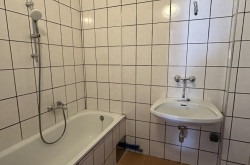 Das Badezimmer ist ausgestattet mit einer Badewanne. Das WC ist vom Badezimmer getrennt.