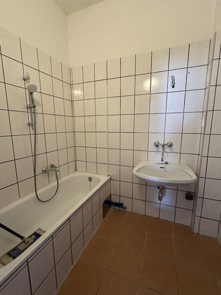 Das Badezimmer ist ausgestattet mit einer Badewanne. Das WC ist vom Badezimmer getrennt.