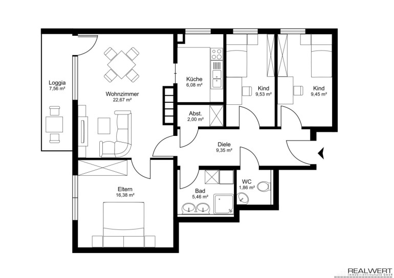 Das Gebäude wurde 1984 errichtet, präsentiert sich in gepflegtem Zustand und ist barrierefrei erschlossen. Die Wohnung ist kurzfristig beziehbar und eignet sich ideal für Familien oder Paare mit erhöhtem Platzbedarf.