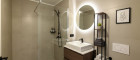 Das Schlafzimmer ist als ruhiger Rückzugsort konzipiert und wird durch einen großzügigen Schrankraum ergänzt, der viel Stauraum bietet und den Schlafbereich elegant erweitert. Diese Lösung sorgt für Ordnung und unterstreicht den hochwertigen Charakter der Wohnung.