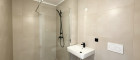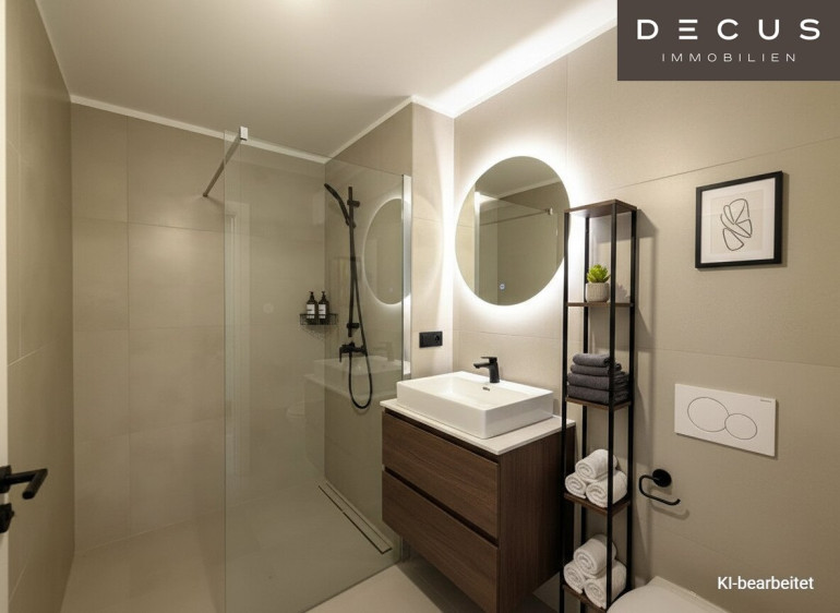 Hochwertige Ausstattungsdetails wie Echtholzparkett, großformatige Feinsteinzeugfliesen, Fußbodenheizung sowie moderne Haustechnik verleihen der Wohnung eine zeitlose, elegante Anmutung. Klare Linien, helle Oberflächen und eine ruhige Materialwahl schaffen ein stimmiges Gesamtbild mit hoher Wohnqualität.