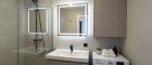 Das Schlafzimmer ist als ruhiger Rückzugsort konzipiert und verfügt ebenfalls über einen direkten Zugang zu einer eigenen Terrasse, die morgendliche Ruhe und entspannte Abendstunden ermöglicht. Angrenzend befindet sich das Badezimmer, das direkt vom Schlafzimmer aus begehbar ist und den privaten Bereich elegant abrundet.