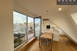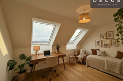 Diese außergewöhnliche Maisonette-Wohnung erstreckt sich über zwei Ebenen und verbindet modernes Design, lichtdurchflutete Räume und hochwertige Ausstattung zu einem Wohngefühl von besonderer Qualität. Die klare Architektur, die großzügige Dachterrasse und die elegante Materialauswahl machen diese Einheit zu einem der Highlights des fertiggestellten Dachgeschoßprojekts im Herzen des 14. Bezirks.