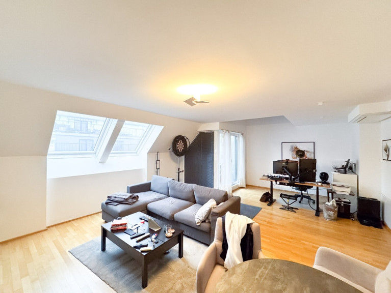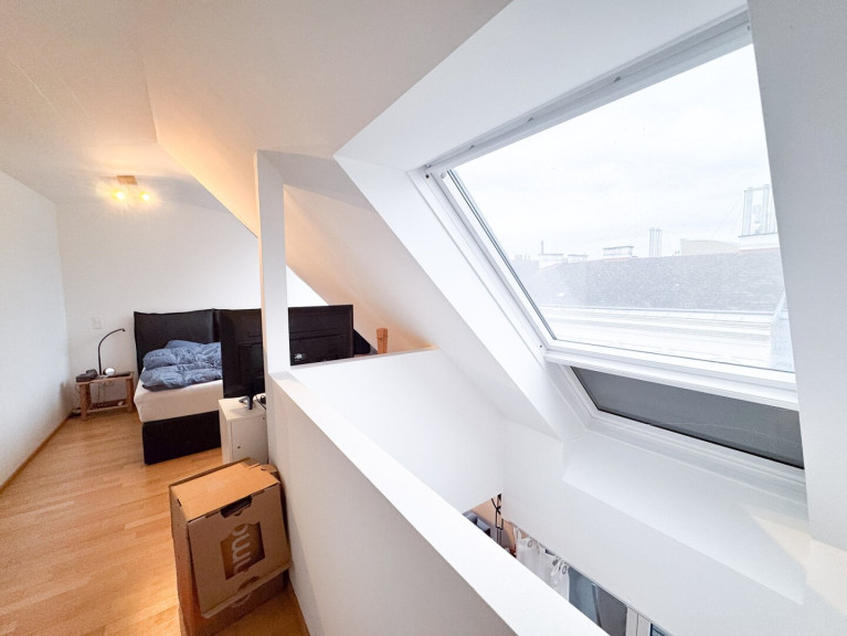 87 m2 Dachgeschoss Maisonette mit 8,74 m2 Terrasse, 4,19 m2 Loggia und Garagenplatz! Nähe Westbahnhof / Burggasse Stadthalle U6