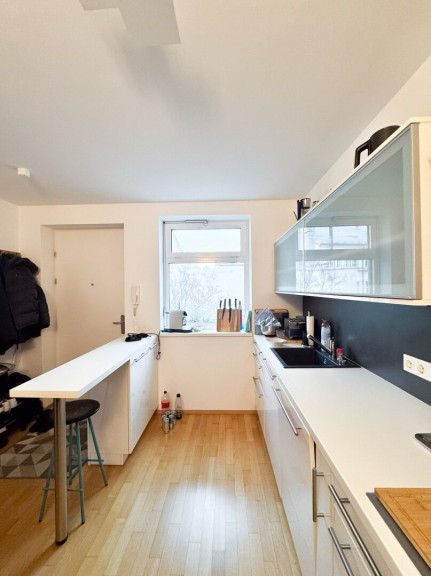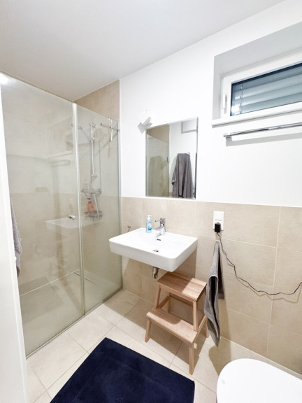 - ein großzügiger zirka 48 m2 großer Wohnbereich mit Essplatz und Zugang zur 4,19 m2 Loggia ( es besteht die Möglichkeit den Wohnbereich zu teilen und somit ein drittes Zimmer herzustellen)