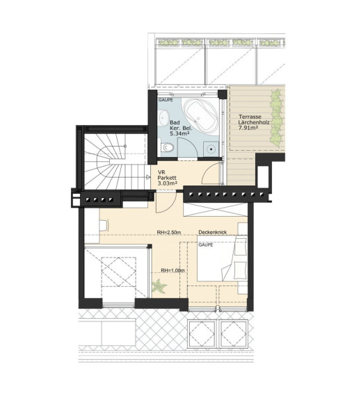 Die Maisonnette Wohnung ist wie folgt aufgeteilt:
