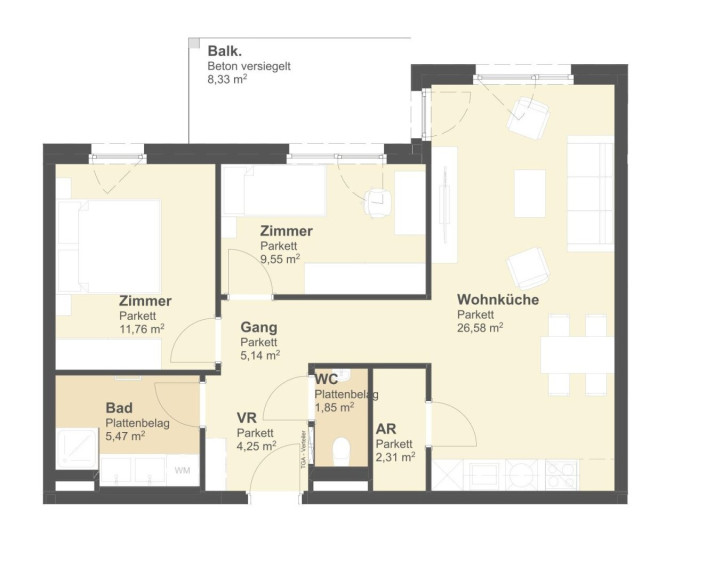 Ob als erstes gemeinsames Zuhause oder als liebevoller Ort für die kleine Familie – diese moderne Neubauwohnung im 3. Liftstock bietet genau den Raum, in dem Alltag leicht wird und schöne Momente entstehen.