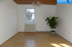 Zur Vermietung gelangt ein Familienhaus mit 5 Zimmern und einer Wohnfläche von ca. 170 m² auf zwei Ebenen auf einem großzügigen Grundstück von 984 m². Ebenerdig befindet sich ein Wohnzimmer, Küche mit Kochfeld, Geschirrspüler, Spüle und Kühlschrank, modernes Fliesenbad mit Badewanne, Waschtisch und Waschmaschine, großzügiges Vorzimmer, ein separates WC und eine Veranda. Die geschwungene Treppe führt Sie ins Obergeschoss in welchem sich 4 Zimmer (davon eines ein Durchgangszimmer) und ein zweites WC, sowie ein Vorraum befinden. Das Haus ist teilunterkellert.