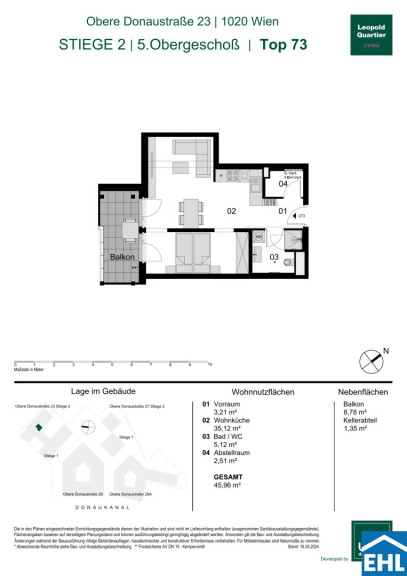 - Optimale Anbindung: In wenigen Minuten zur U4 Roßauer Lände, zum Hauptbahnhof und in nur 20 Autominuten zum Flughafen Wien.
