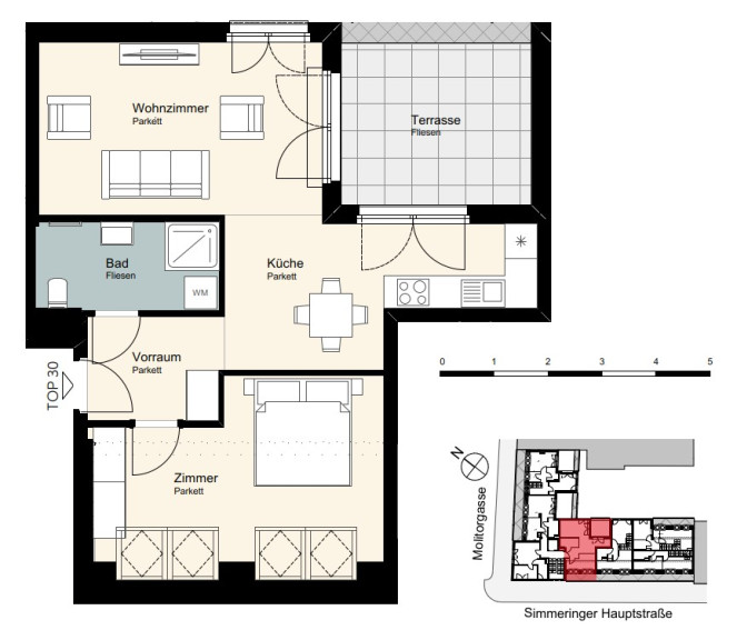 2-Zimmer-Dachgeschoßwohnung mit Terrasse – zu mieten im Neubauprojekt „Herz & Heim“ in Simmering, 1110 Wien