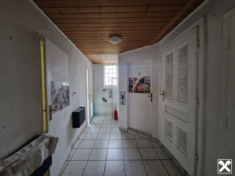 Man betritt das vermutlich um 1900 in seiner ursprünglichen Form erbaute Wohnhaus über eine geschlossene Einfahrt und einen geschlossenen Eingangsbereich. Der Innenhof liegt hinter dem Wohnhaus in absolut ruhiger Lage, hier befindet sich ein kleiner Garten mit einem Holzschuppen.