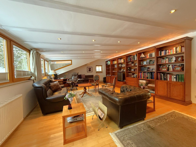 Eine ruhige Bibliothek mit integriertem Bürobereich bietet optimale Bedingungen für Homeoffice, konzentriertes Arbeiten oder ein weiteres Kinderzimmer. Der großzügige Hobbyraum eignet sich perfekt als Spielzimmer, Jugendbereich oder gemütlicher Familienfreizeitraum – je nach Bedarf.