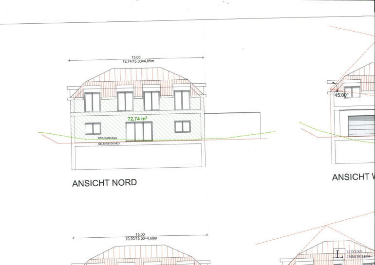 Nach den geltenden Bebauungsvorschriften (Bauklasse I, 25% Bebauungsdichte) erlaubt das genehmigte Projekt eine Villa mit ca. 473 m² Wohnnutzfläche, exklusive Doppelgarage.