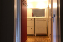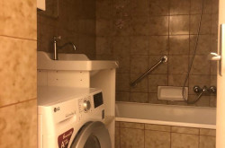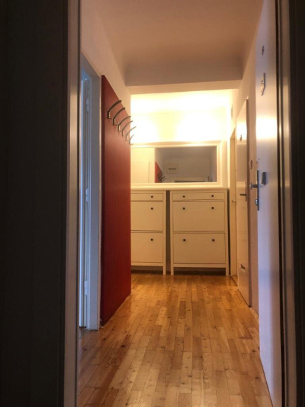 Die Zimmer sind getrennt begehbar: ein Wohn-/Esszimmer, ein Schlafzimmer mit Abstellraum als begehbarer Schrank, eine separate Küche, Bad mit Badewanne, separates WC. Der Küchenblock verfügt über elektrische Einbaugeräte (E-Herd, Geschirrspüler, Kühlschrank, Gefrierschrank. In der Küche (Küchenbereich im Wohnzimmer) befindet sich ein Vinylboden. Die Fenster sind dreifach verglast und schalldicht. Die Böden sind mit Parkett und Laminat verlegt. In den Sanitärräumen verfließt. Alle notwendigen Anschlüsse, z.B. Telefon, SAT, Kabel (Magenta), sind in den Wohnräumen vorhanden. Es wird mit Gas mittels Gaskonvektoren beheizt. Durchlauferhitzer (Gas) im Bad für die Warmwassererwärmung.