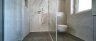 - Böden/Wände: Eichen-Landhausdiele in Wohnräumen, Keramikfliesen (120x120 cm, grau) in Sanitär, wasserbeständige Latexfarbe.