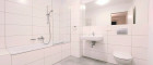- Badezimmer mit Dusche, WC und Waschmaschinenanschluss.