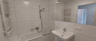 - Badezimmer mit Dusche, WC und Waschmaschinenanschluss.