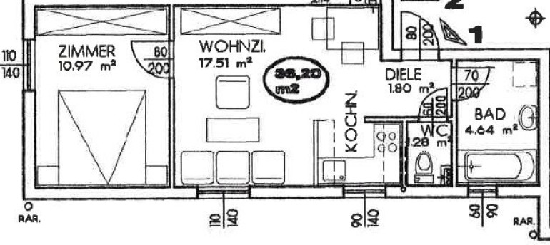 - Wohnung 1: ca. 36 m²