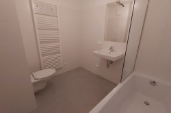 - Badezimmer mit Wanne, WC und Waschmaschinenanschluss