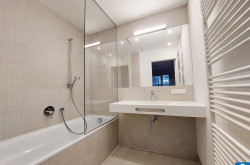 Parkett, Fliesen, Fernwärme, Wohnküche / offene Küche, Personenaufzug, Westbalkon, Badewanne, Wasch/Trockenraum
