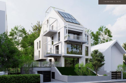 Das Wohngebäude umfasst vier exklusive Wohneinheiten, wobei sich jede Wohnung über ein eigenes Stockwerk erstreckt und dadurch ein hohes Maß an Privatsphäre bietet. Die Dachgeschosswohnung ist als großzügige Maisonette ausgeführt und überzeugt mit beeindruckenden Raumhöhen, mehreren Ebenen sowie weitläufigen Terrassen mit Ausblick über Wien.