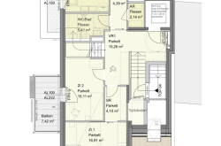 Private Freiräume in Form von Balkonen, Terrassen und einem Eigengarten bei der Gartenwohnung erweitern den Wohnraum ins Freie und ermöglichen aus jeder Wohnung einen angenehmen Blick ins Grüne. Eine barrierefreie Erschließung, Lift, Tiefgarage sowie praktische Allgemeinräume runden das durchdachte Gesamtkonzept ab.